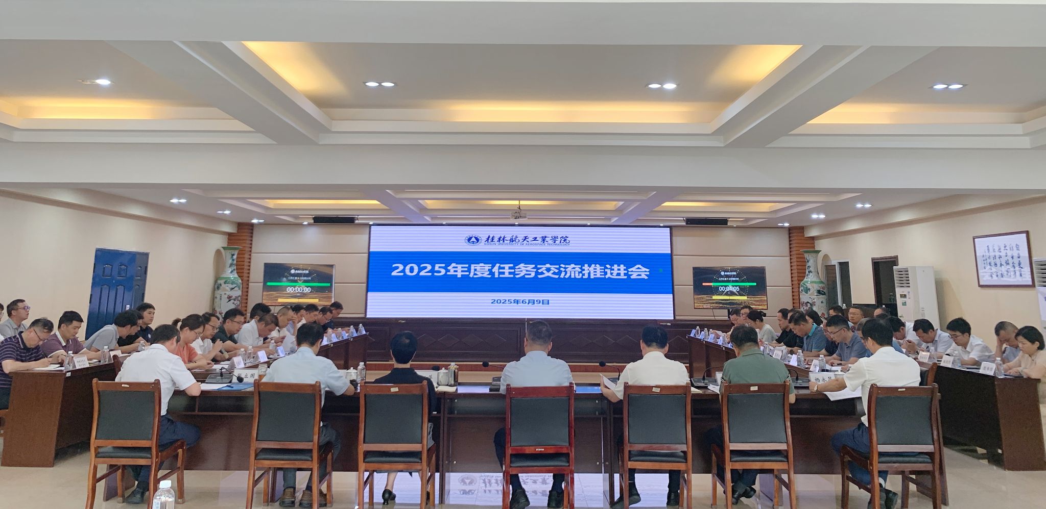 6月9日,学校在飞天楼520会议室召开2025年度任务交流推进会。全体在家校领导、各职能部门及教学单位主要负责人参会。会议由副校长张立国主持。
